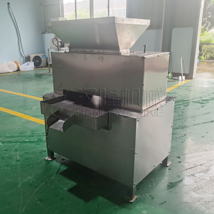 該機主要由機(jī)架、減速機、進料鬥、切刀(dāo)組(zǔ)件兩組(zǔ)、進料輥兩組、壓榨輥兩組、出(chū)汁鬥、出(chū)渣(zhā)口等部件組成。其(qí)主要工作(zuò)原理:接通電源,將物料倒入進料鬥中,1#進料輥輔助進料,1#2#兩組刀片切片水果,然後2#進料輥將水果送入(rù)1#2#壓榨輥之間進行壓榨(zhà)(1#壓榨輥可由(yóu)調隙裝置上下調節,從而控製(zhì)水果出汁量(liàng)),果汁和部分果肉由出汁鬥排出,皮和渣由出(chū)渣鬥排出,從而達到榨汁的目(mù)的。該(gāi)設備除傳動部件(jiàn)外其餘均為不鏽鋼製作。