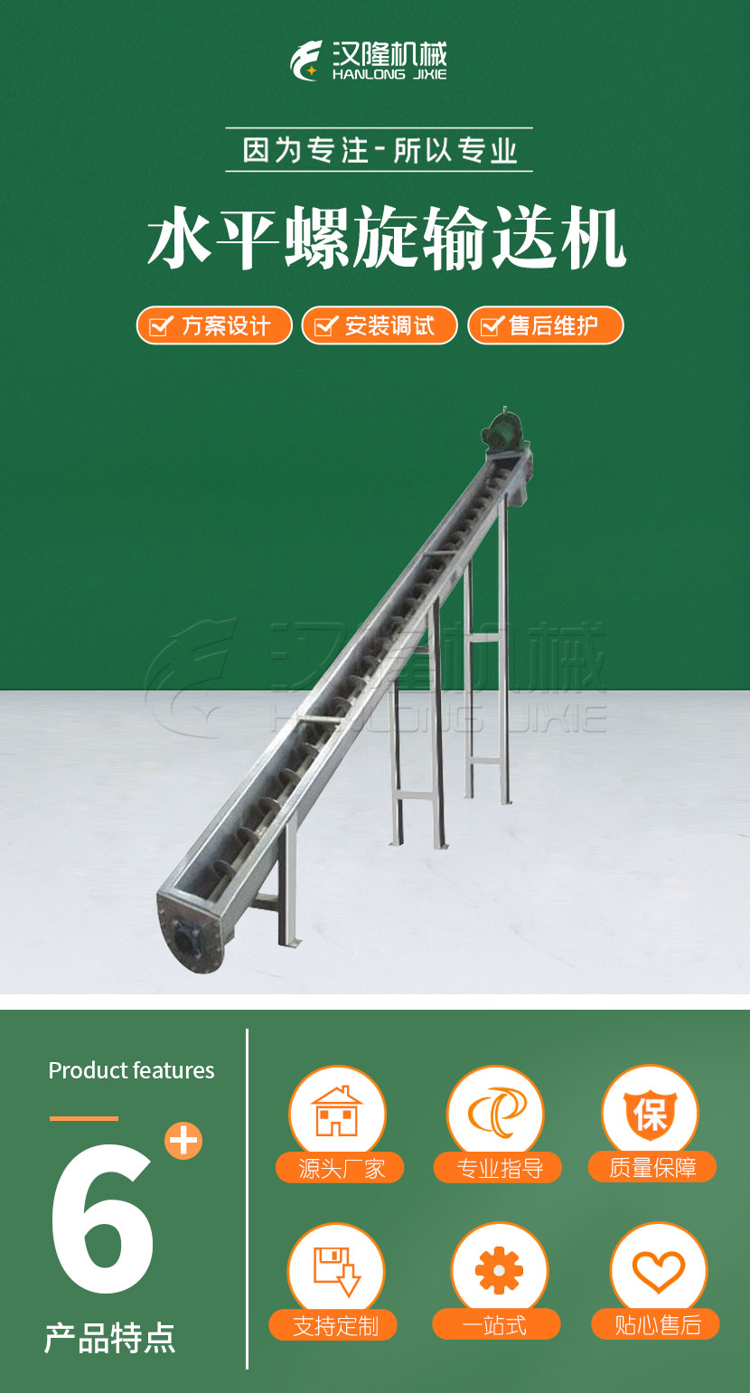 該設備是(shì)利用減速機(jī)帶動螺旋回轉,推移物料以實現輸送目的的機械,具有結(jié)構簡單、截麵積小,便於封閉輸送,可多點加料(liào)或卸料(liào)等優(yōu)點。