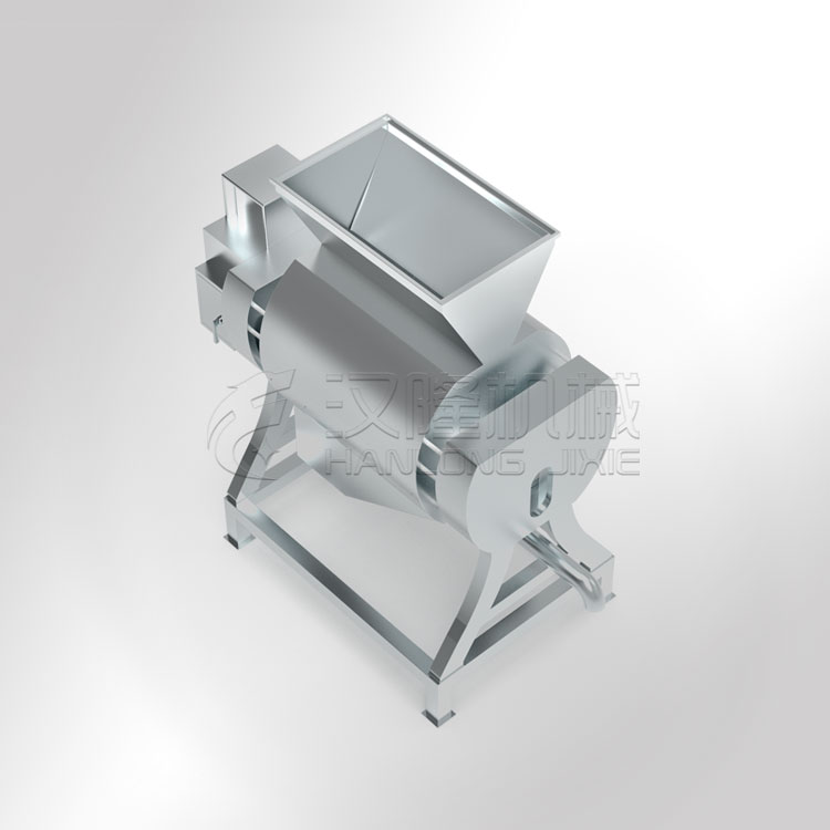 半(bàn)開式錐(zhuī)碗(wǎn)在凸輪的作用下,使其合攏(lǒng)或分開。當張開的半片碗逐漸合攏時(shí),將四開花轉盤送來的(de)半個果實刮入碗內,同時旋(xuán)轉的錐頭逐漸伸入碗(wǎn)內,進行錐汁。由於(yú)上、下轉盤安裝時兩中心線相交特定的角度,故錐頭在錐汁時(shí)能逐漸伸入錐碗內進行錐汁(zhī);錐汁完成後,錐(zhuī)汁頭(tóu)自動(dòng)下降離開(kāi)錐碗,半開式錐碗在凸輪的作用下又能(néng)自動分開,完成錐汁動作(zuò)。榨出的(de)汁集中進入輸送管道,進入下道工(gōng)序,皮渣由排渣口進入排渣管道,集中處理。