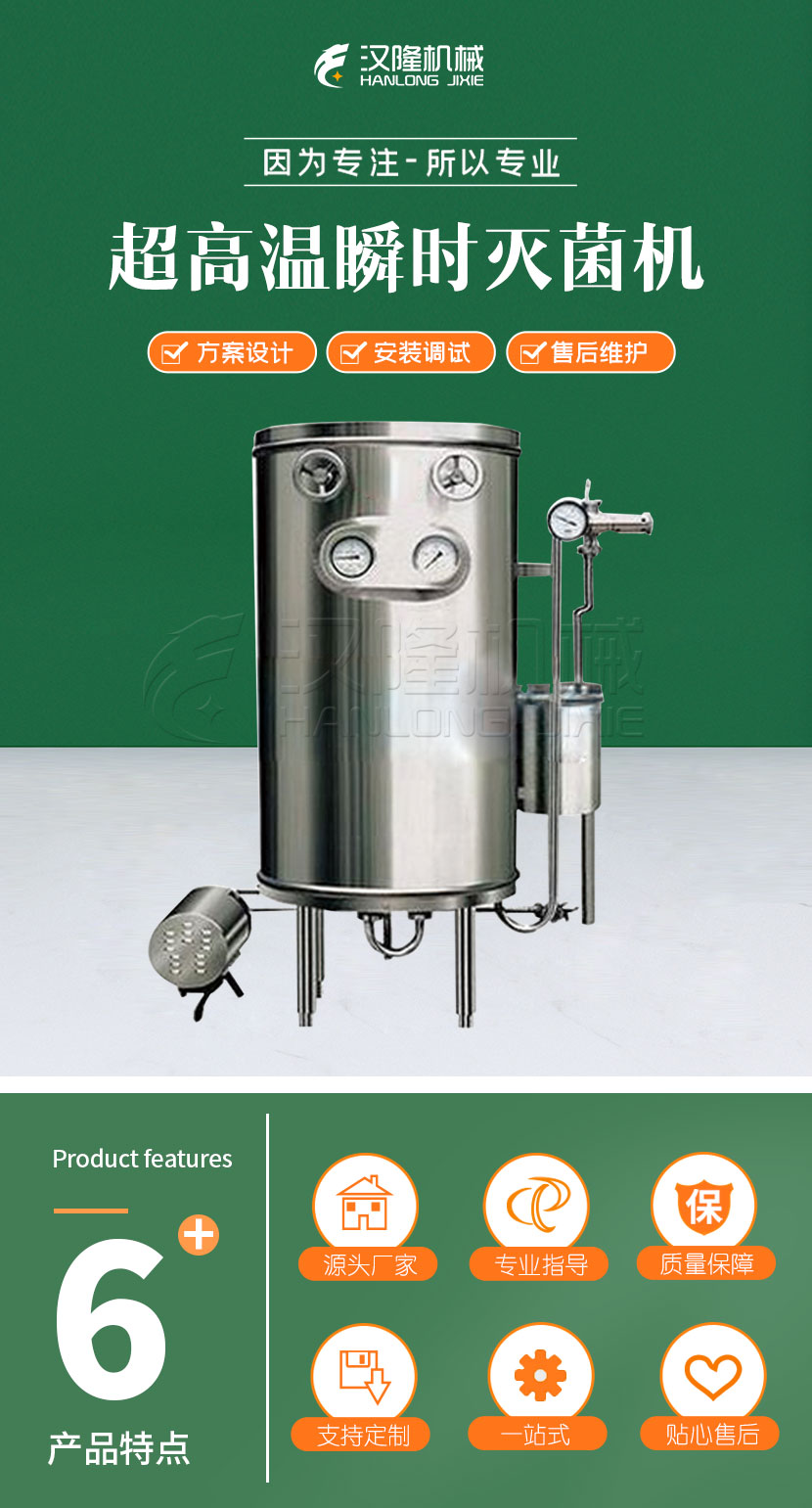 本機適用於牛奶、豆奶、果汁等液態物料高溫瞬間滅菌,它具有高效、節能、操作簡單、滅菌效果好等特點。