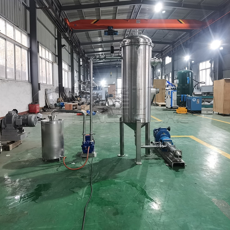 2、緊定好整機上各部螺栓,並連接好各相關管道,同時將進(jìn)料口與前(qián)一道工序的出料口連接,出料口與螺杆泵連接(jiē)。